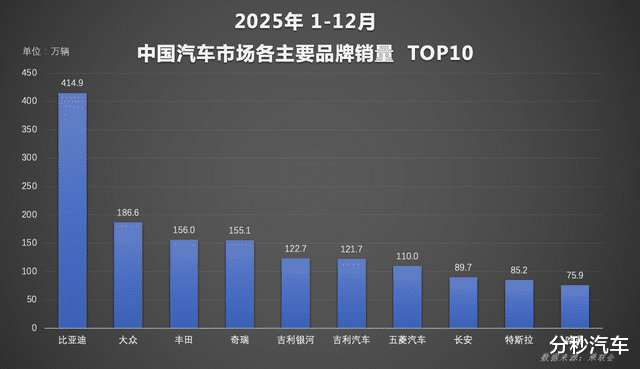 2025年中国汽车市场榜单出炉,比亚迪全年累计销量超过460万辆,包揽中国车企销量冠军、品牌销量冠军,并连续第四年蝉联全球新能源汽车销量冠军,完成“中国双冠+全球卫冕”的阶段性突破。在竞争持续加剧的背景下,其整体规模与领先优势进一步扩大。